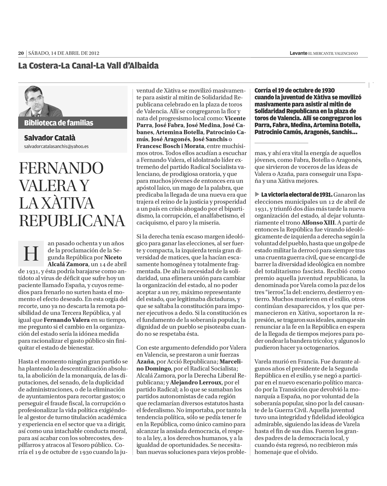 Abr142012HISTORIA DE ESPAÑA A TRAVÉS DE XÀTIVACategoría: HISTORIA DE ESPAÑA A TRAVÉS DE XÀTIVA Autor: Salvador Catala Sanchis http://www.bibliotecadefamilias.com Navegación entre publicacionesAnteriorPublicación anterior:Antonio Chocomeli y el reclutaSiguientePublicación siguiente:Martí, 1812, 25 d’abril i el rebuig als BorbóRelated posts LA COMMEMORACIÓ DEL 12 D’OCTUBRE A LA XÀTIVA DE 192411 octubre, 2024LA HUELLA DE RIBERA EN XÀTIVA11 octubre, 2024DESPERTANT L’AMOR PER XÀTIVA EN LA FIRA DE 192421 agosto, 2024XÀTIVA EN TIEMPOS DE PRIMO DE RIVERA15 julio, 2024150 AÑOS DE CRUZ ROJA EN XÀTIVA9 diciembre, 2023PROCLAMACIÓN DE LA MARE DE DEU DE LA SEU5 agosto, 2023EL INICIO DE LA RUTA DEL AGUARDIENTE EN XÀTIVA22 julio, 2023LA MORT DE LA PROVINCIA DE XÀTIVA8 julio, 2023XÀTIVA Y LOS CAÍDOS EN LA SEGUNDA GUERRA MUNDIAL13 mayo, 2023A VOTAR, SETABENSES2 mayo, 2023EL DESTACADO PAPEL DE LOS VILLANUEVA EN LA HITORIA DE XÀTIVA Y DE ESPAÑA8 abril, 2023BELLESES FALLERES DE LA REPÚBLICA18 marzo, 2023XÀTIVA, LA CAPITAL OLVIDADA DE LA GERMANÍA11 marzo, 2023VALENCIANS VÍCTIMES DE LA SEGONA GUERRA MUNDIAL4 febrero, 2023EL BICENTENARIO DE LA DIPUTACIÓN DE XÀTIVA28 mayo, 2022DIEGO MARVALL NOTARI EN TEMPS DE FELIP V30 abril, 2022XÀTIVA EN TIEMPOS DE CÓLERA15 marzo, 2022LA VIOLÈNCIA POLÍTICA TORNA A EUROPA5 marzo, 2022EL HUÉRFANO SETABENSE QUE IMPULSÓ LA PSICOLOGÍA MODERNA1 marzo, 2022EL PAREDÓN DE LA CASA BLANCA DE XÀTIVA26 febrero, 2022XÀTIVA I LA PERPÉTUA TRANSICIÓ VALENCIANA5 febrero, 20221921 EL INICIO DE LA NUEVA XÀTIVA8 enero, 2022DEL CÒLERA AL CORONAVIRUS1 junio, 2020BOSH I MORATA1 junio, 2020La calúmnia sobre Gil Ferraut9 febrero, 2019La exhumación de María Climent Mateu20 octubre, 2018Una victòria moral perpètua6 octubre, 2018Xàtiva contra los Bonaparte14 julio, 2018Xàtiva i el socarrat. Mes de juny de 170730 junio, 2018Les víctimes del bombardeig de l’estació de Xàtiva10 febrero, 2018La lliga de dones de Xàtiva13 enero, 2018Setabenses asesinados por los nazis26 agosto, 2017Amor tricolor en un 12 de abril12 abril, 2014Manolo Casesnoves i l’espirit de la transició18 enero, 2014Gonzalo Viñes y la Cova Negra9 noviembre, 2013Quan la fira era motor econòmic17 agosto, 2013Vicente Parra Servet: un exilio con final feliz20 julio, 2013El origen del ferrocarril Xàtiva-Alcoi6 julio, 2013El nacimiento del semanario «Izquierda»22 junio, 2013El monument a les llibertats27 abril, 2013En recuerdo de los políticos setabenses de 193113 abril, 2013Xàtiva i el XIX Centenario de la muerte de Cristo30 marzo, 2013En recuerdo de los políticos del Frente Popular16 febrero, 2013En recuerdo del agrario y la D.R.A.V.19 enero, 2013De cuando Xàtiva honró a Perón10 noviembre, 2012De cuando Xàtiva adoptó a Franco27 octubre, 2012El inspector Morcillo y la desaparición del matadero de Xàtiva13 octubre, 2012La política i els canvis del nomenclàtor urbà de Xàtiva29 septiembre, 2012Cuando el estado frenó el derroche de Xàtiva1 septiembre, 2012Manuel Casesnoves y el nacional catolicismo4 agosto, 2012Artemina Botella y el alzamiento nacional21 julio, 2012L’escàndol de la platja d’Alboi7 julio, 2012Un Corpus de encierro y las «soldados de Herodes»9 junio, 2012Martí, 1812, 25 d’abril i el rebuig als Borbó28 abril, 2012La inútil victoria del Frente Popular18 febrero, 2012