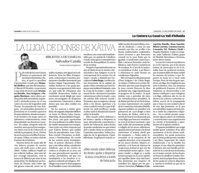 La lliga de dones de Xàtiva HISTORIA DE ESPAÑA A TRAVÉS DE XÀTIVAPor Salvador Catala Sanchis13 enero, 2018