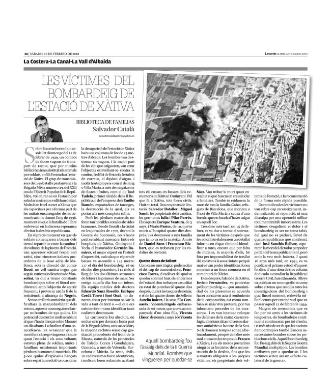 Les víctimes del bombardeig de l’estació de Xàtiva HISTORIA DE ESPAÑA A TRAVÉS DE XÀTIVAPor Salvador Catala Sanchis10 febrero, 2018