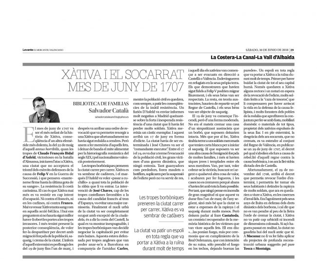Xàtiva i el socarrat. Mes de juny de 1707 HISTORIA DE ESPAÑA A TRAVÉS DE XÀTIVAPor Salvador Catala Sanchis30 junio, 2018