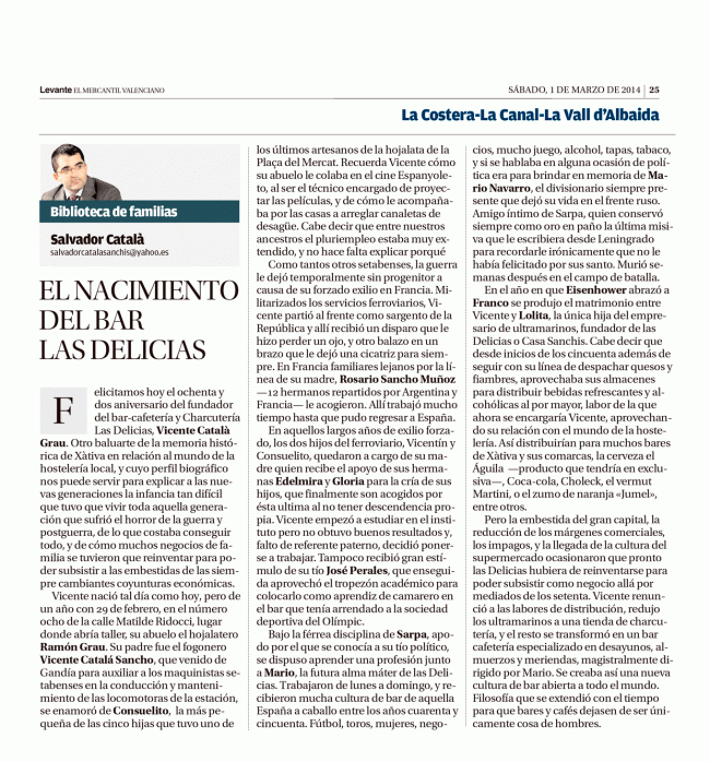 El nacimiento del bar Las Delicias HISTORIAS DE EMPRESA, SERVICIOS Y SOCIEDADESPor Salvador Catala Sanchis1 marzo, 2014