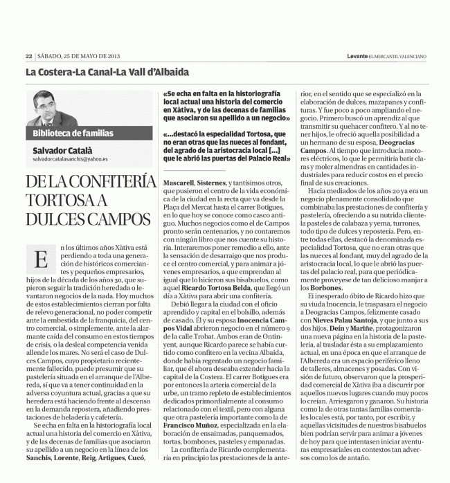 De la confitería Tortosa a Dulces Campos HISTORIAS DE EMPRESA, SERVICIOS Y SOCIEDADESPor Salvador Catala Sanchis25 mayo, 2013