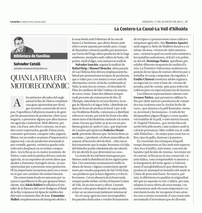 Quan la fira era motor econòmic HISTORIA DE ESPAÑA A TRAVÉS DE XÀTIVAPor Salvador Catala Sanchis17 agosto, 2013