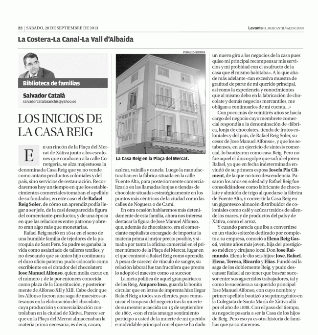 Los inicios de la casa Reig HISTORIAS DE EMPRESA, SERVICIOS Y SOCIEDADESPor Salvador Catala Sanchis28 septiembre, 2013