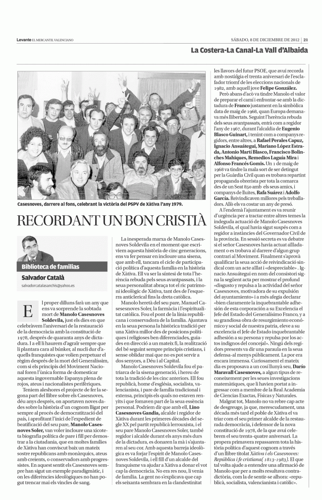 HISTORIA DE FAMILIASPor Salvador Catala Sanchis8 diciembre, 2012